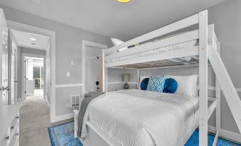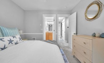 When it's time to rest, head down a level to discover the inviting bedrooms. Each room boasts private bathroom access and features dreamy queen beds that guarantee a peaceful night's sleep. If anyone indulges a bit too much at dinner, the sofa conveniently folds out into a cozy bed for two. And for that seventh guest, we've even prepared a blow-up mattress tucked away in the closet!