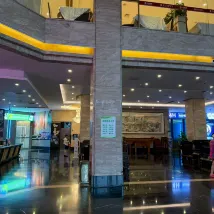 我是攜程鉑金會員,雖然住的酒店不是太多但也不是太少,這個是我所有住過最糟糕的酒店。 1我和愛人帶了兩個孩子定的雙床房,晚上11點到前台結果他們前台告訴我給我弄成了大床房,我們一家4口根本睡不了,半夜11點等了接近半個小時才給協調了一個雙人間。不過還好的是前台的小姐姐一直給我們道歉,我想能住下就算了。 2刷卡開門,迎面撲來及其難聞的黴味,床很硬,睡在床上身體很癢,第二天雙腿都是紅的。 3因為是協調的房間,有些用品用的時候才發現不夠,所以給前台打了2次電話送東西,結果服務員送了兩次東西非常不高興,用質問的語氣問我們為什麼不能要啥東西一次性要完。(這麼大酒店竟然沒有一個機器人) 4如圖酒店地毯超級臟,玻璃也是烏的。 我用攜程訂酒店不下百次,這是我第一次給差評,這酒店真是太糟糕了