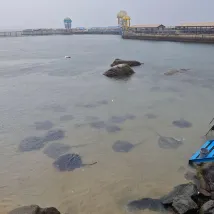 定的臨海閣,沒有陽台的房間,空間相對寬敞點,房間窗外就是魔鬼魚潛水處,可以看見成羣小鯊魚和魔鬼魚在那裡游來游去,特別昨天不斷有大雨,所以在房間裏看魚也是不錯的體驗。 島上環境不錯,喂魔鬼魚特別推薦,很有趣。 就是住店客一定要準備好吃的,好吃的不多,早上也要到9點才有幾個店可以吃粉面,選擇餘地不多。