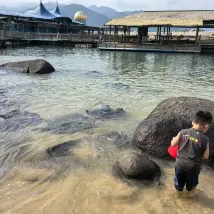 服務很棒,看我們帶娃免費升級房型,服務人員幫忙拿行李,上下房間有專門的遊覽車接送,雖然住山上但是挺方便,可以預約接送,山上我們還看到了很美的🌄。 因為是木頭房子,又在山上,提一點不要遺留吃過的食物或者垃圾在房間,我們娃掉的餅乾碎引來了螞蟻,被我們迅速處理並把垃圾桶封口拿到門外,後面沒有發現有任何蚊蟲進入。 推薦入住並遊玩