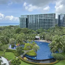 🌴 環境: 酒店坐落在椰林與沙灘的環抱中,推開窗就是碧海藍天的畫卷。熱帶園林景觀精心維護,泳池區域宛如綠洲,隨手一拍都是度假大片📸。這份靜謐與愜意確實配得上"環境滿分"的口碑。 親子設施: 帶娃家庭尤其推薦!小童樂園的滑梯和攀爬設施足夠,而且本次行程正好人少,玩的很愜意 🛏️ 客房: 藍灣標準大床房空間寬敞(40-65㎡),擁有海景陽台,景色絕佳。唯一美中不足——有一個床翻身時會發出明顯嘎吱聲,部分硬件到了更新週期🛏️🔄 每日自助早餐品類豐富,環境好,吃的食材也更香了。 🌊 體驗亮點: 椰林海景與趕海活動完美結合,午後在泳池邊躺椅上放空,就是夢中的度假聖地 (PS:感謝前台多次温馨提示~)