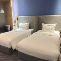 智選假日作為洲際旗下酒店水平還是比較穩定的,這家酒店總體來説還可以,性價比較高。先説好的地方,房間衞生還可以,礦泉水供應充足,晚上也比較安靜,枕頭和床墊都還比較舒適。不足也比較明顯,首先床頭衹有一個開關,一開燈全屋都亮,關了也全黑,非常不人性化,其次吹風機超級拉垮,這個檔次配這種吹風機嗎?再有就是衞生間衹有一個開關,洗澡時候排風扇就必須開着比較涼。早餐種類比較豐富,但是比較諷刺的是門口有個早餐推薦餐食,第一個是咖啡,然後咖啡機被告知壞了,也沒提供其他任何咖啡。停車有地下地面,車位相對充足,就是地下比較窄。還有一點就是上來就要收二百按金,説實話現在收按金的酒店不多見了,跟我説因為房間有收費的東西,但是我進房間看遍了連冰箱都沒有,也沒看見任何收費的東西。