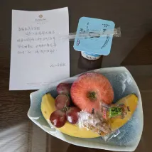 房 設施: 房間乾淨整潔,設施齊全,讓我意外的是房間配有洗衣液,服務細心周到,體現在晚上有點心,水果和酸奶,當知道我們是自駕駛,要敢去另外一個城市,精心準備了蛋糕,麪包,雞蛋,酸奶,花生和水果。