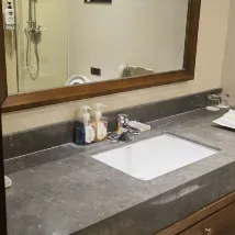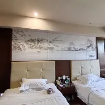 酒店很大,分為A、B兩座,停車場也非常大,停車安全方便,自駕遊者放心入住。酒店服務員服務非常熱情周到,特別是B座管家婁春宴,更是細心體貼,首先為了我家車停着更安全,讓我們換了停車位置,幫我拿背包送到房間,房間已經打開空調,詢問温度是否合適,送來了水果、晚安粥及瓶裝水,帶我下樓去洗衣服,又幫忙晾衣服,並幫我把帶來的食品放入冰箱。第二天早晨發消息問衣服幹了沒有,可以幫我送到洗衣房熨幹。早晨起來一開門,門口掛着一個塑料袋,有飲用水,水果和小零食,應該是第二天的管家掛上的,袋子裏有她的小卡片。房間很大,兩張1.5米的大床,很舒服很寬敞,設備齊全,淋浴噴頭出水很沖,水很熱,毛巾都是消毒後放進紙袋裡密封的,連遙控器也消毒後放在紙袋裡,酒店的早餐也非常棒,品種豐富,有老濟南把子肉和羊肉湯。還有特色糝,和濟南甜沫這兩個地方特色食品,服務員非常熱情,主動給我們盛好特色食品送到桌上。入住酒店的感受就是讓我感到很温馨,體會到了家的温暖,下次來臨沂,還選擇中維華榮大酒店。