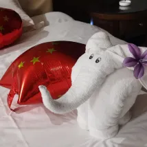 服務很好,開房間的時候還送了寶寶一個小風車,還升級了房型,設施也比較齊全(冰箱有,但不知道怎麼開,還是壞了😂),隔音效果也不錯除了走廊上的聲音,我們在酒店門口買了幾份菜,口味不錯,價格也比較實惠,整體還是很滿意的。
