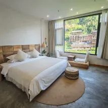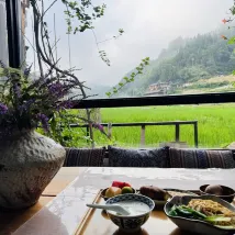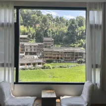 Это лучший отель из всех, в каких мы останавливались за все время нашего двухнедельного путешествия в Китай. Мы прибыли достаточно поздно, но персонал встретил нас от въезда в туристическую зону, помог с доставкой чемоданов. Сам номер прекрасный, и шикарные завтраки. Потрясающий вид из окна на рисовую долину. Много котиков в холле, и птичка. Атмосфера мирной идиллии. Также когда у нас возникли трудности из-за отмены поезда, персонал помог вызвать такси и довёз до парковки. Я рекомендую это место от всей души и искренне благодарю персонал за отзывчивость и помощь. Мы обязательно вернёмся сюда снова, когда будем в Жаосине.