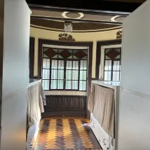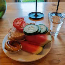 一間兩晚的房間,原價每晚150歐元,位於一棟漂亮的建築裡,還有一個令人驚喜的漂亮花園。我們覺得有點小瑕疵:晚上必須戴耳塞,而且他們好心但堅決地要求我們早餐後自己洗用過的碗碟。我們在歐洲和亞洲住過很多不同的飯店,但這次的體驗很新奇。