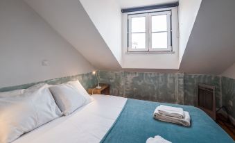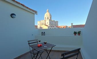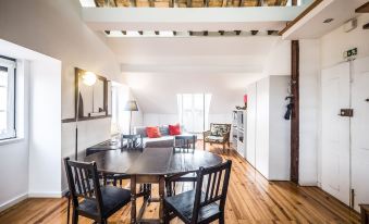 The charm of the attic, with parquet floors, beamed ceilings, elegant furnishings, simple and refined details. From each of these 6 windows you can see a surprising view, the river Tejo, the Pantheon and the rooftops of the city. There is a small terrace where to rest, eating and drinking a glass in a silence that makes you forget to be in the center in a European capital.