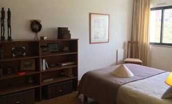 The apartment is 100 m2 and has a fully equipped kitchen with washing machine, dishwasher, stove, oven, microwave oven, refrigerator, toaster and coffee maker for capsules, among other facilities. The large living room has a flat-screen TV and a large window that invites you to relax on the sofa or chaise longue, enjoying the view over the bustle of the boulevard and the small garden in front of the apartment.