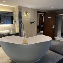 前台工作人員熱情又專業,辦理入住迅速,還貼心地介紹了酒店的免費服務服務,有洗衣烘乾和中葯泡腳。房間更是讓我眼前一亮,寬敞明亮,佈置温馨,設施很齊全,床品柔軟舒適,讓我晚上都能酣然入睡。衞生間乾淨無異味,洗浴用品、一次性用品品質也很高。