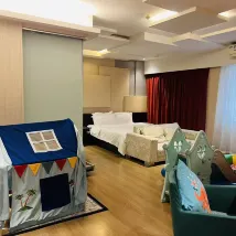 前台小姐姐辦理入住很快,房間空間規劃合理,大小正合我意,不會有壓抑感,訂的親子房小朋友很喜歡。房間裏配備的沙發太實用了,臨時放東西或者休息都很方便,大堂還備有耳塞,睡眠質量直接拉滿。獨立衞浴乾淨整潔,使用體驗很棒。打車可以到酒店門口來接出行超便捷。前台24小時有人在崗,服務很及時,還有免費的洗衣烘乾和中葯泡腳,整體住得很舒心!