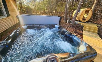 Imagine relaxing in our luxurious year-round 𝐇𝐨𝐭-𝐭𝐮𝐛 and 𝐒𝐚𝐮𝐧𝐚, or cozying up near the 𝐅𝐢𝐫𝐞𝐩𝐢𝐭.