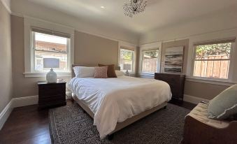 This place is perfect for families with kids! It has a huge fenced backyard where they can run around and play. There are also plenty of child-friendly games, toys, and books set out for you. Plus, it’s close to neighborhood parks and a great selection of nearby kid-friendly activities. We even provide a high chair, crib, crib sheets, and childproofing supplies.