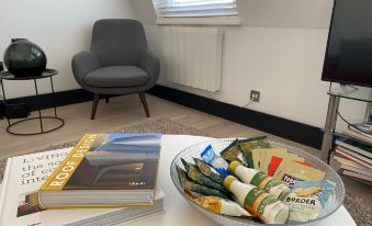 這家度假屋配有1間臥室、起居室、帶冰箱和咖啡機的設施齊全的廚房以及1間帶淋浴設施和免費洗浴用品的浴室。這家度假屋還提供休息區、洗衣機以及1間帶吹風機的浴室。