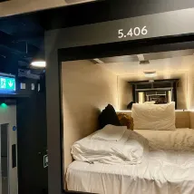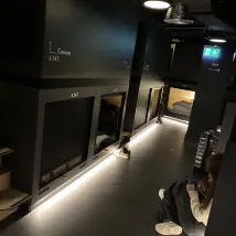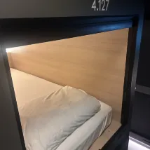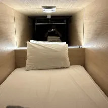 我的膠囊房間滿是灰塵,我咳嗽了一整晚。很多地方還有像番茄醬一樣的污漬殘留物。除了床單,其他地方都沒洗乾淨。浴室狀況糟糕透了。唯一讓我喜歡的是浴室裡播放的音樂。前台工作人員的服務態度很差——系統找不到我的預訂,負責人花了好幾分鐘才解決問題。如果自助入住不快捷,那還有什麼意義呢?