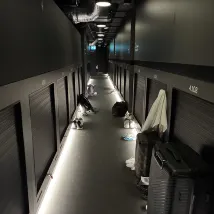 這間超大型的膠囊旅館 一個一個床位超像火葬場的入口 回歸正題 因為空間有限 所以大件行李只能放在公共空間 安全性有點不足 不過地點非常好 外面有中國城、音樂劇等等