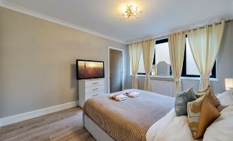 London: Apartment block. Parking. "The Ivy Suite", 3-room apartment 80 m2. Object suitable for 7 adults. Living room with 1 sofabed and 1 french bed. 1 room with 1 french bed. 1 room with 1 french bed. Kitchen (oven, toaster, kettle, microwave). Shower/WC. Facilities: Internet (WiFi, free). Please note: non-smokers only. Smoke alarm.
