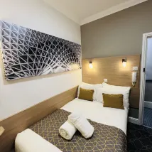 就在車站對面巷子裡,為了一早方便搭乘歐洲之星而選擇這裡,房間雖然小在地下室,但有天井所以明亮,沒有冷氣有電風扇(當天不熱),室內有乾淨的淋浴間但廁所需到室外共用,當天沒什麼人,所以廁所用起來也算方便,為了趕搭火車,這裡是非常適合的。