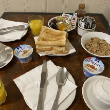 這可不是你想像中法國那種飯店。它更像是由私人住宅改建而成的飯店——地道又別緻! 😜 員工熱情友好,房間每天都會打掃。 早餐雖然簡單,但也夠了——不過要注意,這不是英式早餐😝。但是,餐廳有點小。 總之,對於倫敦一日遊來說,這裡夠舒適了!