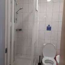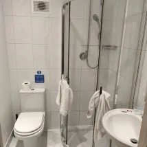 地點離國王十字車站近, 也在大馬路旁, 感覺安全, 房間簡單, 床鋪棉被柔軟舒適, 淋浴間太小, 洗頭時不太能伸展手臂, 熱水夠熱, 鑰匙是傳統鑰匙可自行保管不用交給櫃台, 弄丟要賠, checkout 後可寄存行李很棒, 建議更換備品洗髮精, 不太能起泡诶