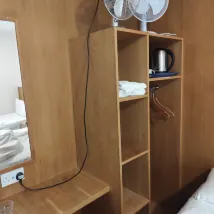 服務員態度友善 8月天氣雖然炎熱,沒有冷氣但用一檔風扇完全不會覺得熱 新型電視 有咖啡奶精,茶都有提供 安全舒適 門房用鎖匙 使用時小心保管, 遺失會收取額外費用
