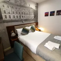 我主要不滿的是房間大小,與預訂網站上的圖片相比。我已經習慣了倫敦一些經濟型酒店的小房間,但這間房間的佈局,床尾和安裝電視的牆壁之間只有幾英寸的空間。要從房間的一側(門和衣櫃所在的地方)走到房間的另一側(書桌和衛生間所在的地方),你必須爬到床上。床尾的空間根本不夠走動(空間比腳的寬度還小,更別說腿的寬度了)。
