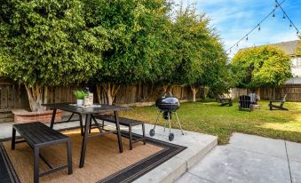 The modern comforts continue with additional amenities like a high speed internet, a full size bathroom, laundry room w/ washer/dryer, iron and ironing board, hair blow dryer, mini personal sized shampoo/conditioner/bodywash, family board games, and a portable Bluetooth speaker. You'll also have access to the shared backyard featuring a charcoal bbq grill, dining table, outdoor seating around a fire pit and string lighting.