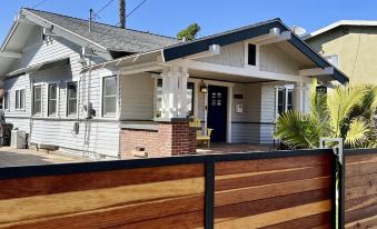 This home boasts modern living conveniences and upgrades while keeping its Craftsman charm and beauty. Enjoy house-wide air conditioning, high -speed WiFi, heaters in every room, and washer/dryer in a separate laundry room. The living room has a 75” TV and you’ll find several board games great for gathering around with friends & family. Each bedroom includes a 55” SMART TV equip with Netflix, Hulu, HBO, Disney+ & more. The kitchen features a 5 burner gas stove, quartz counters, a breakfast bar and stainless appliances. The bathroom has been completely upgraded with quartz counter vanity and beautifully tiled shower.