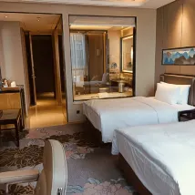 這次入住貴酒店,從踏入大堂那一刻起就超出了我的預期。前台員工不僅效率極高,辦理入住手續迅速流暢,更始終帶着真誠的微笑,讓旅途的疲憊瞬間消解不少。房間設計簡約雅緻,營造出令人放鬆的舒適氛圍。最令人驚喜的是睡眠體驗: 床墊軟硬恰到好處,枕頭支撐力十足,搭配着異常安靜的環境,幾乎聽不到任何走廊或鄰近房間的聲響,讓我享受了一夜深沉無擾的酣眠。衞浴設施同樣出色,淋浴間水量充沛穩定,熱水三秒即達,沐浴體驗極其舒爽解乏。次日早餐更是為體驗錦上添花。餐廳環境明亮整潔,餐食種類豐富,尤其是麪檔師傅現場用心煮制的那碗湯麪,暖胃又暖心,成為一天美好的開啟。從高效熱情的前台、安靜舒適的客房到豐盛可口的早餐,酒店在每一個接觸點都展現出對客人體驗的細緻關注。這次入住體驗遠超期待,值得推薦給每一位追求品質的出行者!