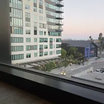 雖然沒看到很多人在附近走動,但我覺得去好萊塢中心步行大約20分鐘應該不難。飯店內部裝潢時尚,和網路上的照片一樣,特大床對一個人來說太大了。飯店沒有牙刷和梳子之類的便利設施,建議大家自備。另外,房間冰箱裡的水大約有200毫升,建議大家買點水帶上去。雖然有耳塞可以隔絕屋頂酒吧的喧鬧音樂,但入住當天我完全沒注意到。飯店有Chromecast,所以可以用iPhone連線觀看我最喜歡的YouTube影片!