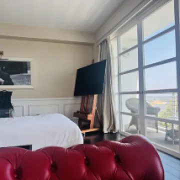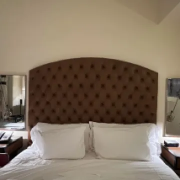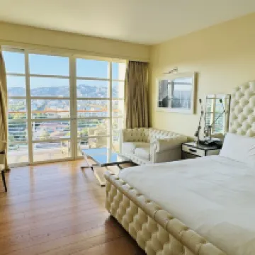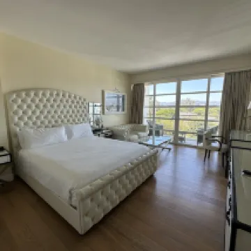房間佈置看起來比較豪華。房間也比較大。陽台及外面的景是主要賣點。不過我這房間的陽台好像少了桌椅,臨走前才發現的。不過倒也不影響,因為外面很熱也並不想在陽台坐着。把陽台的門打開,坐在屋內感覺還是挺好的。房間裏不提供咖啡機,不提供瓶裝水,不提供冰箱。早上10點前大廳有免費咖啡。待客泊車非常貴,好像是77美金一晚,還要另外加什麼補充的費用。服務人員都挺nice的。所在是富人區,所以周圍環境也很好。走路範圍有不少餐廳。我覺得整體還是不錯的,以後有機會還會考慮住。