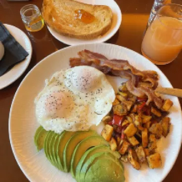 非常比佛利山風格的好酒店, 從車子開到門口的一刻開始….大堂,酒吧, 樓道, 房間, 浴室, 經典而不失現代。 早餐也非常豐盛。 看到其他評論有寫朝大街一面有些吵, 因為有時差就要求了看北邊山景房。 下次來還會訂。 有一點不明白, 它家的税比其他酒店都高,每天51+7美元。 不太明白。