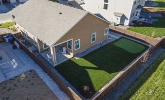 This 4 bedroom and 3 bathroom is a brand new multi-level family home in Loveland, CO. With the finished basement you have two bedrooms, a game room equipped with board and cards games. Entertain everybody with Mr. and Mrs. Packman, bumper pool, ping pong, poker AND air hockey! Or relax on the large adjustable couch in the TV entertainment room. A private fenced in backyard with year round Astroturf and a three-hole putting green. Enjoy a cup of coffee on the front porch with a beautiful glimpse of the mountains! Just minutes away from downtown Loveland and plenty of breweries. Great access to Coyote Ridge, Bobcat Ridge, and Devil's Backbone! 45 minutes from Cheyenne, WY.