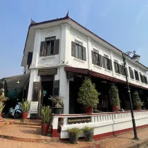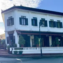 酒店的位置非常好,去洋人街,皇宮,夜市,香通寺,清晨佈施都步行…通過前台預訂了去關西瀑布的包車也不錯,途中還打卡了稻田咖啡。因為是有年代感法式風格老房子,設施方面稍微欠缺點,總體來説性價比不錯! 門口有小船擺渡過去有家餐廳環境不錯!