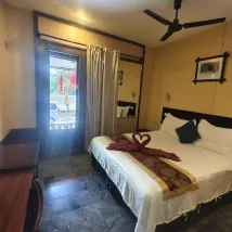 建築雖老,但飯店卻洋溢著東南亞風情。從陽台上可以眺望到塞南康河。飯店地理位置優越,靠近布施場所。
