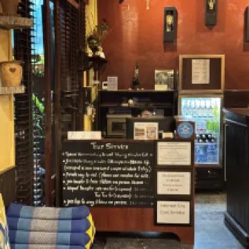 在老城區沿河,很好找也方便,櫃台有提供叫嘟嘟車或mini van到機場,價格會比自己叫計程車便宜,也挺方便。因為是老宅改建,房間設施只能說基本,還算乾淨。但是以這樣的價格已經非常值得了!