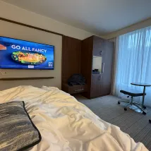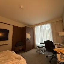 工作人員友好而熱情。飯店房間內配備智慧大螢幕電視。飯店距離機場僅幾步之遙,步行約10至15分鐘。從飯店對面有巴士前往機場。然而,在我旅行的那天,公共汽車沒有出現。廁所很臭,我在床單上發現了血跡。