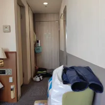 地點非常方便,好吃好逛好搭車,週六日兩天剛好遇到今年的例大祭可以湊個熱鬧。 飯店房間蠻大的,打開兩個行李箱還有走路空間沒問題,冰箱雖然沒有冷凍但很夠冷,浴室就是那樣小小的,但我這間1016蓮蓬頭是新的喔!浴廉也很新👍🏻 整體乾淨舒適,值得回訪!!