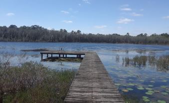 This is a charming place with a wilderness feel. You will receive unmatched refreshment and peace in this quiet spot. Pull a chair to the dock and enjoy gorgeous sunrises and ethereal sunsets. Take the canoe that is provided for a ride around the pond and check out the abundant lily pads or fish for bass. Didn’t see any gators, but surely there are a few around. There is a very nice fire pit in the yard and plenty of space for parking. The house is a bit rough around the edges, but it has air conditioning, hot water for showers, stove, refrigerator, microwave, and plenty of towels and linens. The host is also very responsive. There is a laundromat in nearby Madison as well as groceries and restaurants. We had a very nice time and would definitely recommend to anyone who wants to get away from the hustle of life.