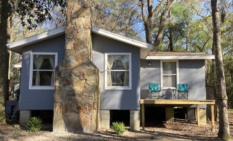 Enjoy a cozy waterfront cottage nestled in the backwoods of Madison County Florida, one of the most beautiful and peaceful areas in North Florida! If you are adventurous this is the place for you! This small country home has one large bedroom with a new queen size memory foam mattress (sleeps 2) a futon (sleeps 2 children) and a 32" TV with ROKU and DVD player for movies. A large equipt kitchen and bathroom with bathtub/shower. The Living-room has a futon (sleeps one or two). For an extra guest there is an air mattress. There is Internet/Wifi (the password is posted on the fridge) and a 50" TV with ROKU and DVD player with movies or rent movies from the Redbox just down the road in front of the Dollar General Store. The beautiful stone fireplace is decorative only! The property is on 2 acres of nature and wildlife with a canopy of trees and beautiful sunsets on the water! Watch for the deer, turkeys and huge owls that come by! This is the perfect place for a truly relaxing vacation getting back to basics to enjoy the beauty of nature and outdoor fun! Board games and cards are provided for family fun! There is a canoe, life jackets and Fishing poles are in the well house for some good bass fishing or sit on the dock to soak up some Florida sun! This is private property and you do not need a fishing license to fish here! You may also set up tents for a great camping experience! Roast marshmallows by the rustic fire pit or sit on the back deck where smoking is permitted and outdoor chairs are provided! A charcoal grill is provided for your cooking out pleasure, need to supply your own charcoal. Phlox Pond may be rented for events such as weddings for an additional charge. Guest would be responsible for property clean up as well as any property damage. Message owner for details. Be sure to visit the many beautiful parks and natural springs as well as the famous Suwanee River Music Park located in Live Oak. Wild Adventures Amusement Park is nearby and plenty of restaurants and shopping in Valdosta Georgia just 30 minutes away! Dollar General is one mile and Winn Dixie is in town about 10 miles! You are sure to enjoy the southern charm of Madison County and the small town of Pinetta! This home is in the middle of the woods and the lightening bugs are really cool. We know you will enjoy this country getaway!