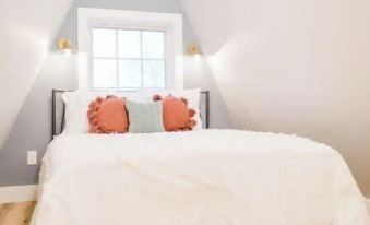 This cabin is a chic space with a fully equipped kitchen, spacious bathroom, living room, and upstairs bedroom loft. The loft contains an open bedroom with a queen size bed and dresser. To access the loft, there is a steep staircase. In addition to the loft bedroom, we offer a queen pull out sofa bed located on the first level of the cabin.
