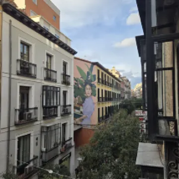 位置很好,確實是中心區了,步行到主要景點都不遠。處在一條步行街上,朝街房間有個迷你陽台,但是做了三層隔音,所以街上的聲音一點兒都不吵,但是老房子內部結構隔音就不太行了,是否安靜取決於其它住客素質。老闆和店員服務態度都不錯,特別是年輕人,雖然英語沒那麼流利,但交流也算沒問題了,而且特別熱情周到。自駕可以停車在附近三百多米的一個地下停車場Parking Aparcamiento Escuelas de San Antón.,酒店住客有折扣,24小時18歐在馬德里不算貴了。