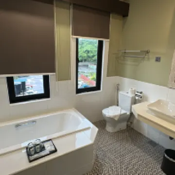 房號:202 優點: - 飯店距離雞場街 (Jonker Street) 步行 10 分鐘路程 - 新裝修的店屋 - 房間裡有風扇,很有度假氛圍 - 漂亮的屋頂泳池 - 簡單、充足、美味的早餐 - 房間有浴缸 - 獨立浴缸和淋浴 缺點: - 隔音效果可以更好。聽到走廊和樓上的聲音 -浴缸有點低 - 提供便宜盥洗用品 - 有磨損跡象