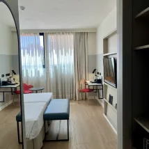 説實話,這酒店隔音相當差,每天半夜三更都被吵醒,門咣噹咣噹關起來,然後打掃聲音一大早也非常大。睡不好的真的不能選這家,服務就是基本服務,啥也沒有。前台給的最低樓層,窗户有廣告牌遮擋,反正再也不會選這家。除了離車站近一無是處。