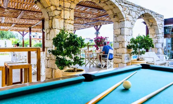 De 2 zwembaden zijn helemaal prima, ligbedden bij het kleinere zwembad zijn erg hard dus bij het grotere gaan liggen dus. Sommige personeels leden zoals de vrouwelijke manager zijn erg chagrijnig. Ander bediend personeel is normaal vriendelijk. Er wordt uitgebreid reclame gemaakt voor happy hour (2 cocktails of longdrinks voor €10,-) van 21 tot 01u. Maar let op, voor de happy hour krijg je niet de merk variant (Bacardi, Di Saronno enz) maar een goedkope variant. Op zich niets mis mee maar als je dan bv rum-cola besteld wordt er Bacardi in geschonken en willen ze je de volle mep laten betalen. Als je ze aanspreekt over happy hour en dat je niet hebt gevraagd om Bacardi maar gewoon om rum worden ze erg boos!! Kamer is ruim en de bedden prima. Maar als je pech hebt net als wij kom je op een kamer met een klein badkamertje met een heel klein douchebakje met douchegordijn. Ook dat op is zich nog te doen. Maar uit de douchekop komen 3 stralen als je geluk hebt, drama dus. Ik ben een man met kort haar en met wat kunst en vlieg werk kon ik mijn haren uitspoelen maar mijn vrouw had een groot probleem. Daarnaast moest ik zelf een ophang mechanisme maken om de douchekop op te hangen, deze viel nl telkens omlaag. Bij de receptie gevraagd of het gerepareerd kon worden maar helaas. Airco was prima maar je moet er voor bij betalen en als je de werksters goed fooi geeft krijg je bijna dagelijks nieuwe handdoeken. Niets boven op de kasten leggen, daar ligt nog viezigheid van 2 jaar geleden. Als je kunt omgaan met de ongemakken kan de vakantie toch fijn zijn. Ik raad dit hotel niet bij mijn vrienden aan.