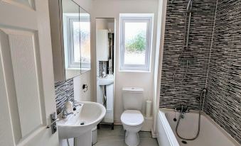 With 1.5 bathrooms— a family bathroom with a bath & shower over, and a downstairs toilet—you’ll have plenty of space to get ready for your day or unwind after an adventure.