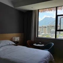 酒店的位置在茂縣城邊,很安靜,來説房間也很不錯,很大很乾凈,早餐也美味,去松坪溝住這裏不錯,去徒步路線