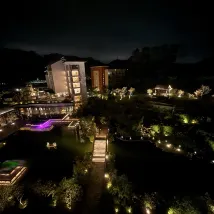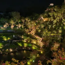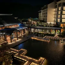 本來怕私隱,訂的山景私湯房,到店後前台Iris升級為園景,説是晚上可以看錶演。和媽媽在這住了兩個晚上,體驗很好,早餐豐富,員工熱情,經理也是訓練有素。酒店有很多動物,但是都好乾凈,沒有味道,尤其小鹿,非常温順可愛,我連續兩天都有去餵它們,甚至想帶它們回家。白天去爬了一下山,餵魚。晚上在房間陽台泡湯看演出,演出水平也不錯,尤其小船從另一邊划過來的時候,是江南的風情。酒店的中餐廳味道也很好,份量很大,很容易就吃不完。下次會再來住幾天,就是呆在酒店,也非常輕鬆愜意。