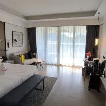 我定的是豪華親子房,房中房,有一個小房間有上下床,孩子特別激動。我定的本來是兩大一小的自助早餐,酒店非常好講話,給我贈送了小寶貝的免費早餐,陳雪珠服務員,態度非常好。總體來説,很適合來度假,環境一級棒,特別乾淨,舒適。