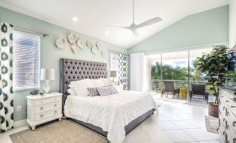 Second Master with King Bed, en-suite bath, kitchenette, second living room with view of pool and water.